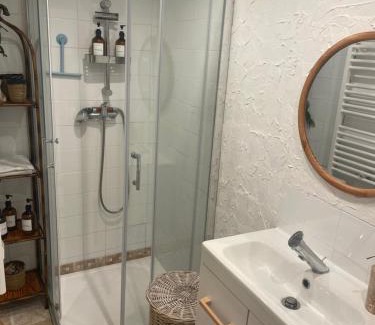 Offering a garden, Studio proche parc expo et aéroport offers accommodations in Saint-Jacques-de-la-Lande. Guests may go for a swim in the private pool. Free Wifi is available throughout the property and Jacques Cartier Metro Station is 2.3 miles away. The apartment consists of 1 bedroom, a living room, a fully equipped kitchenette with a toaster, and 1 bathroom with an a bath or shower and bathrobes. A flat-screen TV with streaming services is featured. For added privacy, the accommodation features a private entrance. Parc Expo Rennes is 2.3 miles from the apartment, while Clemenceau Metro Station is 2.3 miles away. Rennes–Saint-Jacques Airport is 1.2 miles from the property.