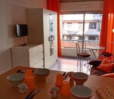 Studio proximité plage - 4CALYPII70 Flat for 4 pax close by the sea offers accommodations in Canet-en-Roussillon, a 4-minute walk from Central Beach and 9.5 miles from Stade Gilbert Brutus. This apartment provides accommodations with a balcony. The apartment includes a fully equipped kitchenette with an oven and a fridge, as well as a coffee machine. The accommodation is non-smoking. Collioure Royal Castle is 15 miles from the apartment. Perpignan - Rivesaltes Airport is 15 miles away.