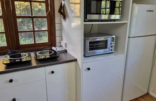 The studio was completely renovated in 2020 with new kitchen and bathroom with an expansive deck added to the back of it. Many of the original features like the timber doors and windows were retained, and add character to the building.