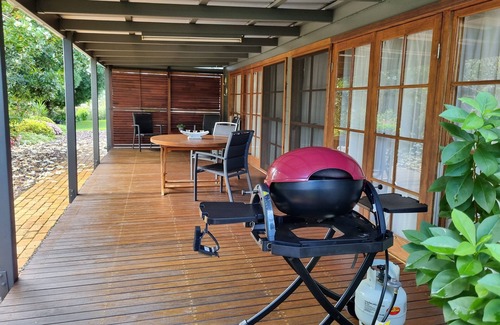 A quaint, open plan studio, sits amongst lovely gardens in a very quiet street in Reesville, just six minutes drive from the popular town of Maleny, in the highlands of the Sunshine Coast.