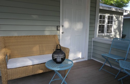- Quiet, private studio apt, screened porch, covered parking, garden sitting area!
