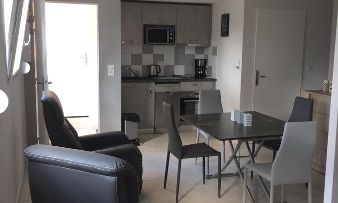 Studio 35 m2 in small joint ownership, bungalow easily accessible to the elderly, Walk-in shower, WC, terrace, parking, lawn.