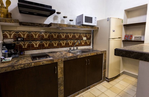 This studio is located inside a property in downtown area, about .9 miles (18 min walk/10 local blocks) from Merida's cathedral. It's a 25 square meter en-suite space (269 sq. ft.), it's equipped with a kitchenette, flat TV with satellite channels , high speed internet, etc. Parking subject to availability, please ask. Crib and sofa-bed upon request. Please note that the plunge pool and the lobby are shared common spaces with other two studio apartments, feel free to use them any time!