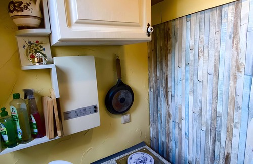 A sunny mini-kitchen and a bathroom with rain shower invite you to reflect on simplicity and realize that not much is needed for happiness.