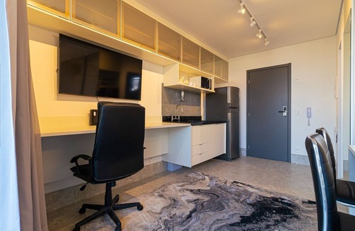 Complete and renovated studio at Helbor Wide on Avenida Rebouças in the Pinheiros neighborhood, easy access to Jardim Paulista and Faria Lima. With a flat and tree-lined view from the twentieth floor, the apartment is elegant and cozy, has a balcony and parking space as well as a heated pool on the roof, cinema, mall, restaurants and complete leisure.
