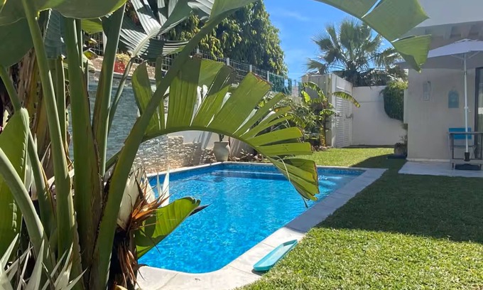 Studio part of a modern villa in a quiet area, with access to a swimming pool and a large garden. This Studio is new with all the amenities (heating, air conditioning, TV, Internet, heated water ...) equipped with a kitchenette. This accommodation is close to shops. Near lake 1 and 2, 20 minutes on foot and 15 km from the city center and 5 km from the northern suburbs. Can accommodate 2 people.