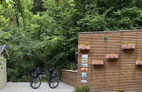 To make your meals a small fully equipped kitchen with a combined oven, a toaster, a kettle, a Dolce Guisto coffee machine, a induction hob 2 burners, a small fridge freezer and of course all the kitchen utensils.