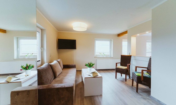 Best-rates for the Schrammsche Muhle apartment starts from $239 per night with includes Child Friendly, Internet, Kitchen, Parking, Pet Friendly, Bedding/Linens, Fireplace/Heating, Security/Safety, Guest Services with all other amenities. Perfect for Weddings is committed to ensuring every guest experiences a comfortable and extraordinary stay, whether planning a romantic getaway, a honeymoon, a pet-friendly stay, or celebrating with the entire wedding party.