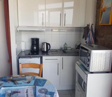 Studio offers accommodations in Trégastel, 1.2 miles from Greve Blanche and a 18-minute walk from Saint-Samson Golf Course. This apartment offers free private parking and an elevator. Offering a balcony with sea views, this apartment also features a flat-screen TV, a fully equipped kitchenette, and 1 bathroom. The accommodation is non-smoking. Guests can also relax on the sun terrace. Begard Golf Course is 20 miles from the apartment. Brest Bretagne Airport is 58 miles from the property.