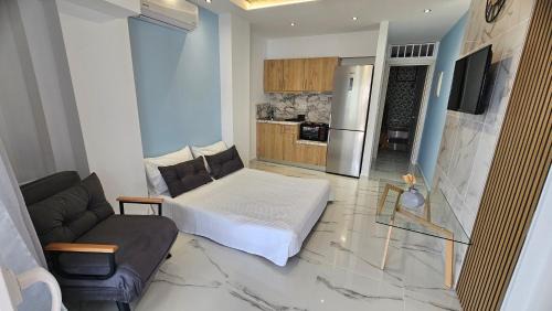 Studios plein soleil offers accommodations in Neos Marmaras, a 18-minute walk from Neos Marmaras Beach. This apartment features accommodations with a terrace. Free Wifi is available throughout the property and Paradisos Beach is a 5-minute walk away. The air-conditioned apartment is composed of 1 separate bedroom, a living room, a fully equipped kitchenette, and 1 bathroom. A flat-screen TV is available. The accommodation is non-smoking. Thessaloniki Airport is 67 miles from the property.