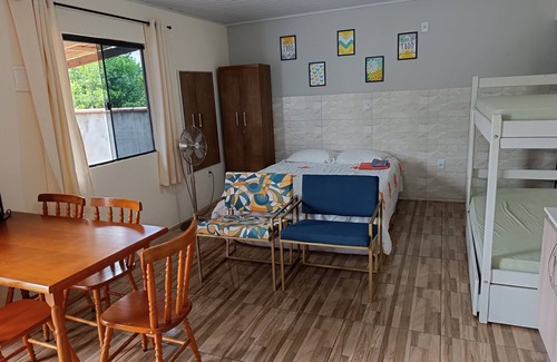 Nestled in Blumenau, this 1-bedroom, 1-bathroom vacation home brings it all within your reach. Fans of nature and the outdoors will love being 10 minutes by car from Vila Germanica Convention Center and Park and 13 minutes from Edith Gaertner Botanical Garden. Jump into your car and make short work of the 4-minute drive to Casa da Memoria da Escola Numero 1 or the 5-minute drive to Lauro Muller Bridge (Ponte Do Salto) (and enjoy the property's convenient covered onsite parking in the meantime).