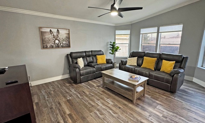 Spend time exploring the beauty of Nevada and experiencing all that Pahrump has to offer. Come stay at our fully-furnished 3BR home. It's close to everything you need, including Death Valley, Wineries, golf courses, and much more! Enjoy a quiet evening outside with your friends or family around the fire pit and relax on the patio furniture while having BBQ in our spacious backyard which includes a putting green & Mini Golf. You can also enjoy playing Ms. Pacman on the Multi-game cocktail table.