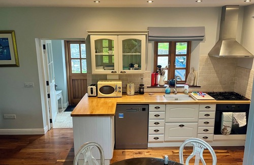 The large garden is shared with us if we are home, but we are very mindful of your privacy. The cottage also has a private deck, perfect for watching the sunsets. We have three very friendly dogs - 2 collies and a Newfoundland (a gentle giant). They love people and love to play with children. The cottage is surrounded by meadows and there are lots of walks on the doorstep.