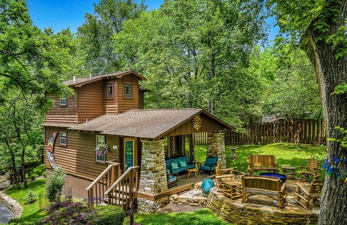 Stunning 2 Bedroom Cabin In The Woods, Covered Porch, Jacuzzi, Kitchen & Hot Tub is located in Eureka Springs Historic District. Stunning 2 Bedroom Cabin In The Woods, Covered Porch, Jacuzzi, Kitchen & Hot Tub provides accommodation, featuring Bedding/Linens, Fireplace/Heating, Child Friendly, among other amenities. This Cabin features Bedding/Linens, Fireplace/Heating, Child Friendly, to make your stay a comfortable one.