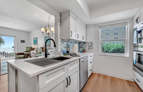This oceanfront retreat offers spectacular direct views of the Atlantic Ocean, providing a soothing backdrop to your stay. Relax in the spacious living room, savor meals in the fully equipped kitchen, and enjoy the ocean vista from your private balcony. The master suite boasts a comfortable king-sized bed and in-suite bathroom, while the second bedroom offers a cozy queen-sized bed. The remodeled kitchen (2023) provides all needed essentials, plus additional comfort items. The kitchen has double ovens, all new appliances, and a beautiful coffee bar.