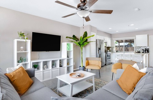 Enjoy the bright and contemporary design accompanied by modern amenities spread across this entire home. While decorating this inviting retreat, we worked hard to create a feeling of a second home for our guests. Healthy natural light warms up space during the day by shining through windows and patio doorway.