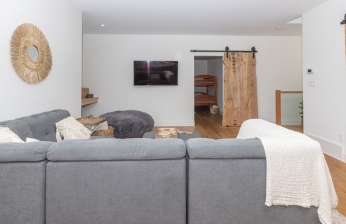 Enjoy all the luxury this swanky home has to offer! The wide plank honey floors lend itself to a chef's paradise along with a large living room for everyone to cozy up and watch a movie on the big screen TV. Not to mention the bunk beds!