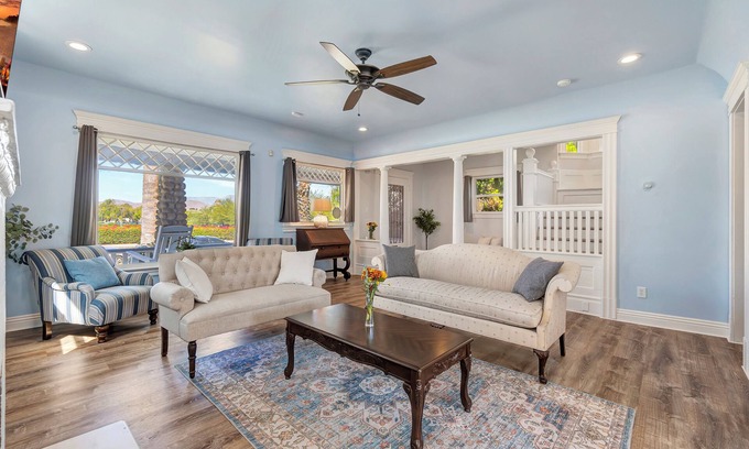 Welcome to the Blue House, a spacious historic home located steps from the Riverside Convention Center, the iconic Mission Inn, Cheech Art Museum, and the shops, restaurants, etc. of downtown. Ideal for convention-goers and large families, this remodeled 4 bedroom home blends timeless Riverside charm with modern comforts, remodeled bathrooms, and features a large yard with ample parking. It's a perfect getaway to this lovely city. We would be honored to welcome you.