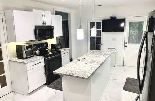 I have a newly renovated home with over 4000sf located on a private lot. The home includes lots of amenities and on a quiet street. Three floors and three full baths with custom tiled showers, home theater, pool table, and gym with sauna. Large deck out back with a screened in portion equipped with a tv and surround sound. Also it’s located 10 minutes from uptown. I pride myself in customer service and making sure that my guest are comfortable in every way and I look forward to being your host!