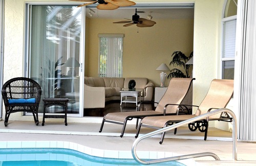 Keywords: Beautiful high ceiling villa, quiet, new furniture, immaculate. New kitchen, new bath, new showers, new floors. Separate room for washing machine and dryer, Garage for 2 cars. Private heated pool and covered patio to swim, relax, read and enjoy, including your own private beach access to the Gulf of Mexico across the street, where you can get your own collection of the famous shark teeth.