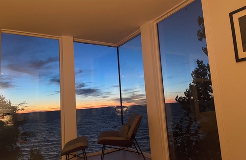 A rare find, the owners will only rent this gem 3-4 times per year. Award winning 5 bedroom, 5 and 1/2 bath home, phenomenal views of the lake from almost every room. 2 doors down from an eagle preserve. Peaceful and private yet only 20 minutes from Harbor Springs, Mackinac and bridge to the Upper Peninsula. Modern bluff-side getaway near Cross Village. The home is perfect for modern design lovers who also appreciate a private, natural setting. The home sits on three and 1/2 acres of lake-front property. Featured on the cover of Northern Home and Cottage Magazine's June, 2014 addition https://mynorth.com/2014/08/a-modern-cross-village-home-tucked-away-on-sturgeon-bay/