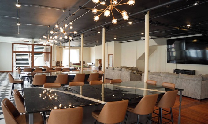 Welcome to our stunning 9-room VRBO nestled in the heart of historic downtown! Perfect for families, groups, or weddings, this spacious retreat comfortably sleeps up to 24 guests. This VRBO used to be the hotel for the Riverfront Event Center. A large common space is located on the 2nd level. It's the ideal spot for gathering, relaxing, or enjoying meals together. Plenty of restoration and updating has recently gone into this historic building that was previously operated as a hotel. With spacious accommodations, you and your guests can comfortably spread out. This aprtment features 9 hotel-style bedrooms with their own bathrooms and a large common area with game tables, large TVs, dinner seating and wonderful views of downtown. Please no pets or smoking while visiting.