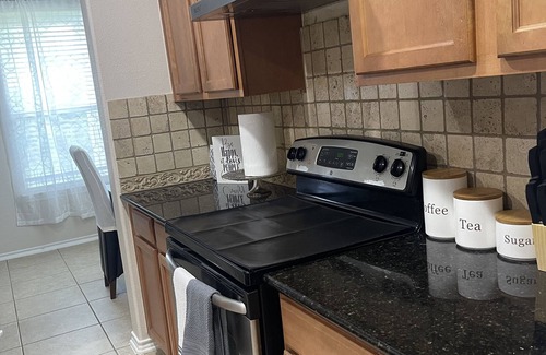 Welcome to this stunning, spacious 4-bedroom home in Houston, TX! This charming retreat is the ideal base for your Houston adventures. Nestled between Downtown Houston and Galveston, you'll be just 5 minutes from Memorial Hermann Hospital, 10 minutes to HCA Houston Clear Lake, and 15 minutes to NASA. Enjoy convenient access to Hobby Airport (15 minutes) and Galveston Beach (35 minutes), with Crystal Beach just 45 minutes away.