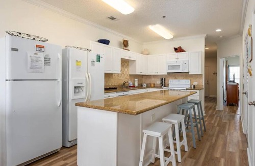 Searching for the ideal wedding accommodation? The Stunning and Spacious 5 BR Condo- With Ocean Views and more! Cherry Grove Villas 402 offers everything you need for a memorable stay. This spacious ocean-view condo is designed to host large groups, making it perfect for wedding parties or family gatherings.