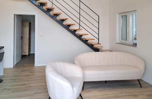 This modern holiday apartment in Pirovac impresses with its stylish, bright design and an open bedroom gallery, which creates an airy and inviting atmosphere. The interiors are furnished with great attention to detail, so you will immediately feel at home. Here you can enjoy a harmonious combination of modern comfort and cosy ambience, perfect for a relaxing holiday.