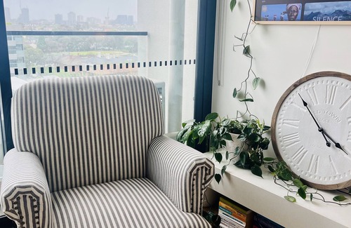 A modern apartment, awash with natural light, on the 10th floor, designed with a cosy and warm minimalist style, you'll enjoy the full-width windows and floor-to-ceiling balcony, with large sliding doors providing a full uninterrupted view of the surroundings.