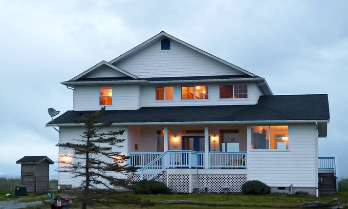 Perched on the sunny shores of Dungeness Bay, Lighthouse Manor is a beachfront paradise offering breathtaking views from every room. This stunning waterfront home allows you to step off the deck and onto the sandy beach, where you can watch ships glide through the Straits of Juan de Fuca and gaze at the majestic sights of Mount Baker, the Dungeness Lighthouse, the Olympic Mountains, and a blanket of stars at night.