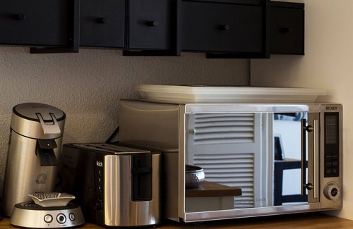 The apartment is equipped with a washing machine, tumble dryer, dishwasher, microwave, coffee maker, kettle, etc.