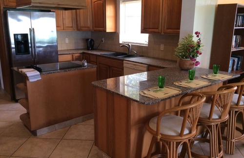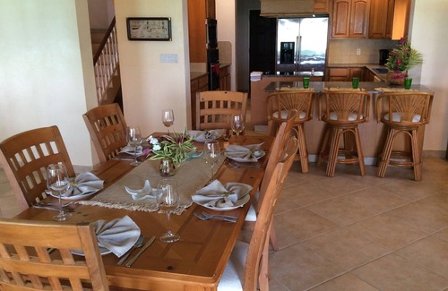 Dream Maker is a large property surrounded by lush tropical gardens and palm trees, steps down to the private beach, boat dock and jetty.