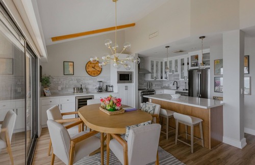 The kitchen, dining area, and living area were all recently furnished and remodeled in the Fall of 2023. The furniture is a mix of classic brand names and has incredible style.