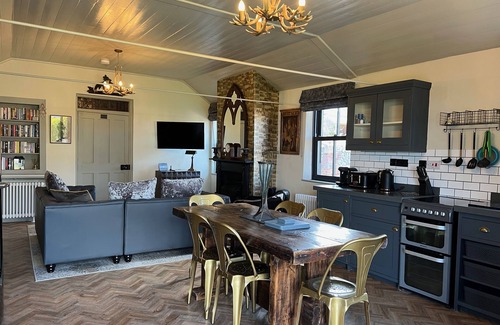 Chapelmarsh circa 1836, formerly a chapel, and sympathetically newly refurbished to a boutique high-end deluxe spec by its current owners, former multi-award winning hoteliers. Chapelmarsh is set in an elevated position overlooking the famous (AONB) bird watching nature reserve and the beautifully scenic North Norfolk coast. Peacefully tucked-away yet moments from all the amenities of Salthouse village, fabulous attractions of North Norfolk: Bird-watchers, walkers, boating, beaches, biking, seal-trips, golfing, National Trust, fabulous shopping in Holt and Burhnam Market, and picturesque harbours. This very special place imbued with the owners' trademark attention to detail, has literally everything to offer the discerning guest - so much so they will want to return time and time again. There is a dramatic open-plan main room comprising of kitchen, dining area and lounge, ensuite master bedroom with King bed and second bedroom (sea views) with separate shower-room. A charming entrance courtyard, sun terrace and enclosed garden all afford spectacular sea views.