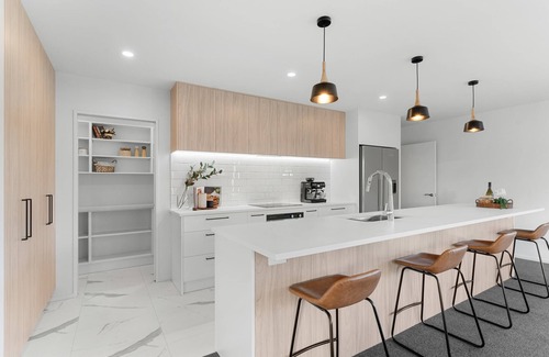 Each of the four well-appointed spacious bedrooms is furnished with a plush queen bed, ensuring a restful night’s sleep for all guests. With two inviting living rooms, there’s plenty of space for everyone to relax, unwind, and enjoy quality time together. The open-plan kitchen is fully equipped with high grade Fisher and Paykel appliances, making it a joy to prepare meals and entertain in.