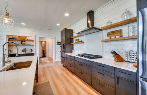 HOME FEATURES: 2 Smart TVs, 2 remote workspaces, sunroom, wood-burning stove, loft w/ exercise bike, dining table w/ chandelier, books, board games, ceiling fans, farmhouse furnishings, open floor plan, chic & modern decor