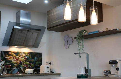 The flat has two spacious double bedrooms, and a large open plan kitchen-diner, fully equipped with cooking equipment and plenty of space to cook and dine-in.