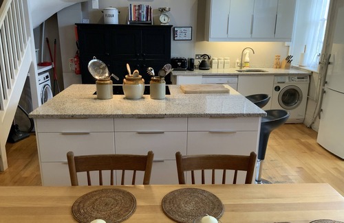 It has large glass coach house doors bringing in lots of light to a lovely modern white gloss open plan kitchen with beautiful granite surfaces, washer dryer, dishwasher, fridge freezer, Microwave, Neff Steam Oven and large Neff induction hob. A dining area seating 8 people. Lounge area with beautiful Jetmaster Bath Stone fireplace, Smart TV. Upstairs is the master bedroom with a super king size bed, pocket sprung mattress. All bedding is The White Company goose down. 2nd Bedroom has Kingsize bed with pocket sprung mattress. Upstairs in the attic bedroom are 2 single beds and Kingsize bed. Ideal kiddies den.
