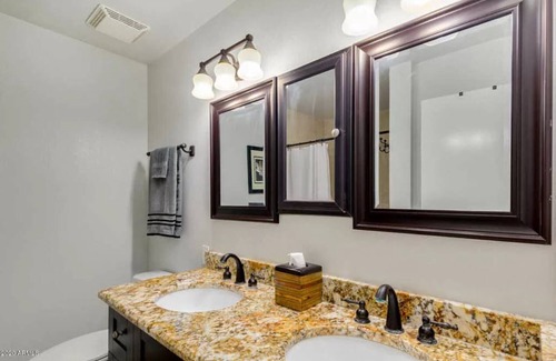 This modern, newly remodeled condo w/Loft, is located right off the 101 freeway and I17. An excellent location, not far from Scottsdale, but also great access to I17 for trips to Sedona, Flagstaff, and other such destinations. Guests will love the private sleeping arrangements including a King sized Tempur-Pedic mattress, as well as our modern yet humble and simple decor. Relax in the roomy LOFT, with recliners and 65" TV.