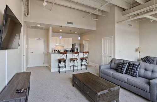 The Stunning Downtown Condo "Central CBD Location" with Secure Onsite Parking is an ideal wedding accommodation, perfectly situated in the vibrant Warehouse/Arts district. This fully furnished condo provides a luxurious and convenient experience for you and your guests, ensuring a memorable stay during your special day.