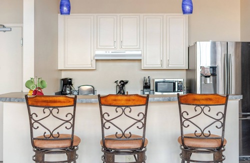This upscale condo boasts a variety of amenities to ensure a comfortable stay during your wedding festivities. Featuring secure key card access, elevator access, and two queen-sized sofa sleepers, the unit easily accommodates family and friends. Enjoy modern conveniences such as central heating and air conditioning, a washer and dryer, complimentary Wi-Fi, and flat-screen TVs in each room. The well-equipped kitchen, complete with a dishwasher, refrigerator with ice maker, and coffee maker, makes it easy to prepare snacks or meals for your guests. Plus, with secure onsite parking available for up to two vehicles, you can rest easy knowing your transportation is taken care of.