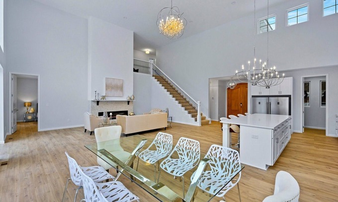 This magnificent retreat features multiple levels of living space, ensuring that you and your loved ones have room to unwind and celebrate. Enjoy the convenience of two fully equipped kitchens, perfect for catering your event, as well as elegant dining ware and serving platters that set the stage for a memorable feast. The outdoor area is perfectly suited for al fresco gatherings, featuring a trendy charcoal Egg grill on the back patio and beautifully landscaped grounds. For entertainment, you can indulge in a home theater experience with a huge screen, or unleash your creativity in the music room complete with instruments for jam sessions. With luxurious linens, smart home technology, and convenient self-check-in, your stay at the Stunning Elegant Retreat will be as seamless as it is enjoyable.
