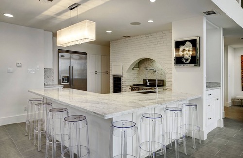 You’ll love this amazing modern waterfront retreat on Galveston Bay with large private pool. Walk to the beach and hiking trails or do a little fishing from the back yard. Open concept floor plan with floor to ceiling water views. Chef's kitchen with Viking appliances, cooking essentials and seating for 10. This home is perfect for couples, families, small groups or small corporate retreats! Only 30 minutes from downtown Houston.