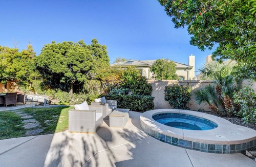 Step outside to discover the backyard retreat, complete with a soothing spa, where you can relax and rejuvenate amidst the serene surroundings. Take a leisurely stroll to the neighborhood park or explore the nearby shopping and dining options, all just minutes away.