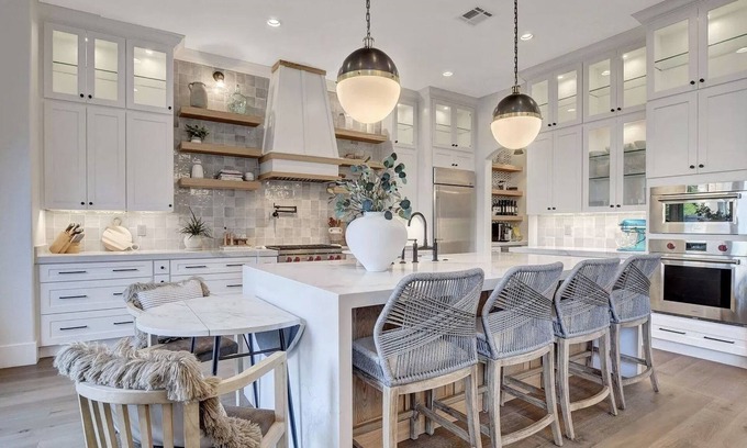 The heart of this home is the chef's kitchen, boasting high-end appliances, abundant storage, and a sprawling island, ideal for culinary adventures and entertaining. The open floor plan seamlessly connects the kitchen to the living area, creating a welcoming space for gathering with loved ones.