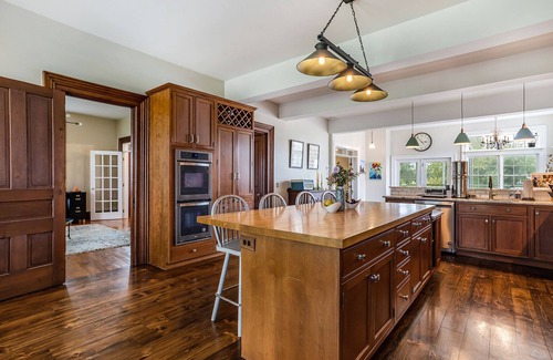 This stunning farmhouse is the perfect place to gather. Open spaces, big rooms, and scenic views are the perfect backdrop to your family celebration. Our family has been renovating & maintaining this estate for years and have modernized the spaces while incorporating mid-century modern style.