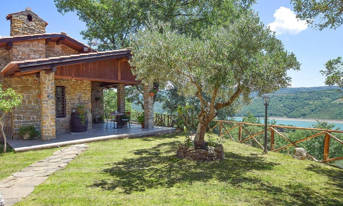 Vacation home in a unique position, surrounded by the green olive groves and vegetation of Cilento Vallo di Diano and Alburni National Park, with an enchanting view of the lake formed by the Alento dam. In fact, this accommodation is located just 3 kilometers from one of the most beautiful tourist attractions of Cilento, the Oasis of Alento. In this oasis there are nature trails for hiking or biking (bike rental on site), bird watching, horseback riding or picnics in equipped areas or canoeing or sailing tours. In 15 minutes by car you can reach the beaches of Agropoli to the north or Marina di Casalvelino to the south. Only 4 kilometers from the highway, you can reach in a short time all the most beautiful destinations in Cilento. Decorated with typical Cilento stone, the house consists of a large living room with fireplace, a bathroom, a double bedroom, a kitchenette and a mezzanine with low ceiling and futon. Outside, a large pergola overlooks the garden with a stone oven and barbecue.