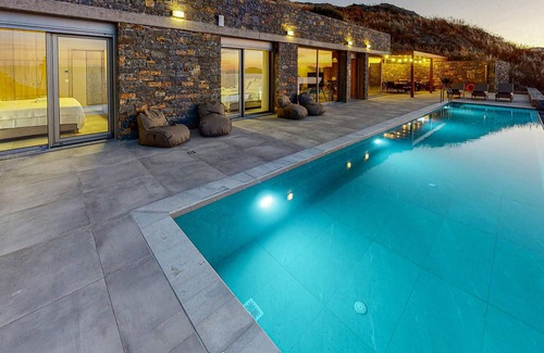 Built on a rocky cliff edge overlooking the Cretan Sea, this luxury villa offers its guests a relaxing environment and a tranquil beach atmosphere.