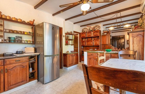 In the middle of a nature reserve lies this rustic vacation home, furnished in Spanish style. From the terrace you can enjoy the view over the olive trees, pine trees, flowers to the mountains. The property is extremely quiet as the location is paradisiacal. The vacation can be enjoyed by families with children, or families with friends in the middle of a biological garden with a pet. The house consists of two levels and includes on the lower floor a separate apartment with its own entrance. The equipment with infrared heating makes even a stay in winter pleasant. For those interested in golf, there is the Club La Sella at the Hotel Marriott, about 2 km away. On foot, you can spend the evening in typical Spanish restaurants in the tranquil village of Jesús Pobre, not far from the famous Montgo mountain. In this lovely village you can enjoy the famous antique and producer market "Mercat del Riurau" on Sundays. To the famous cities Denia and Javea with many cultural and culinary possibilities it is only about 6km. Baby crib on request and with extra charge. Arrival on weekdays can be organized on request.